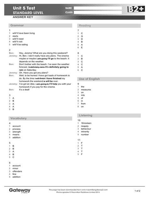 Download Pearson Education Unit 5 Test Answer Reader